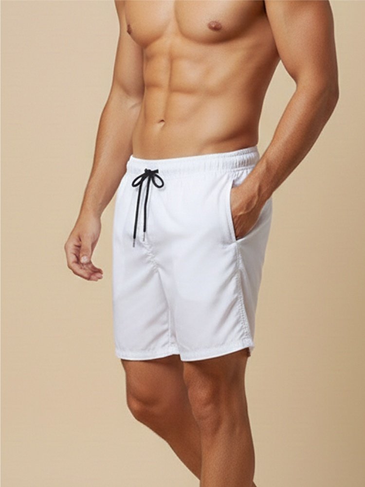 Cor: branco | Material: poliéster | Modelagem: short elastic, cordão de regulagem, bolso lateral e traseiro | Modelo veste M.